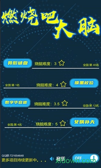 《燃烧吧大脑》是基于最强大脑2020最新游戏项目开发的手游,包含了女娲补天、摸黑校位、异形谜盘等多个经典项目。游戏每周都会根据节目内容进行更新,计划打造一个年度合集。如果你在游戏中遇到困难,可以参考最强大脑节目中的详细规则。通过这款游戏,你可以亲身体验最强大脑比赛项目的难度,看看自己是否也能成为脑力达人。