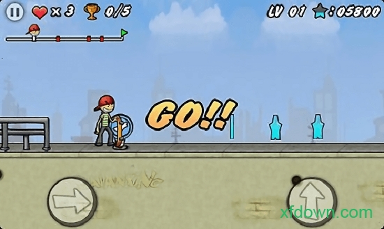 滑板少年的操作非常简单,只需使用屏幕左下方和右下方的两个按键即可完成加速和跳跃。加速键让你在滑行中保持高速,而跳跃键则让你在空中完成各种炫酷的特技。需要注意的是,跳跃的时机非常重要,稍有不慎可能会撞上阶梯或花盆等障碍物。因此,玩家需要精准把握跳跃时机,才能顺利通过关卡。此外,游戏中某些特定的加速跳跃点还能让你在空中完成高难度的特技动作,展现你的滑板技巧。