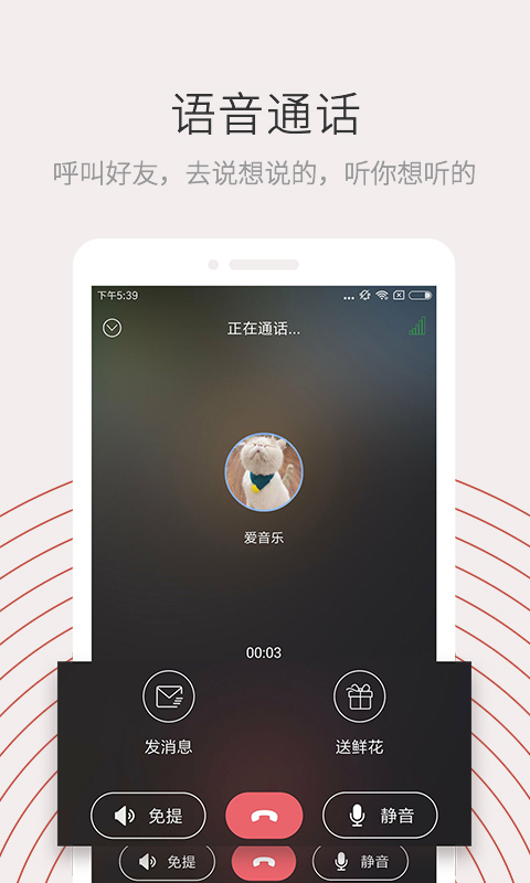 【通话】支持高清语音通话,一键呼叫好友开启私密聊天。新增的"即时合唱"功能让远隔千里的你们也能同唱一首歌,创造难忘的音乐回忆。