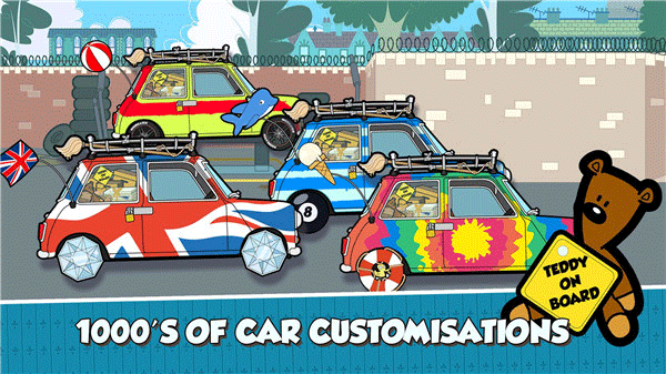 迷你车挑战:驾驶憨豆的经典绿色小车完成特技。车辆改装系统允许玩家更换轮胎颜色和喇叭音效。
