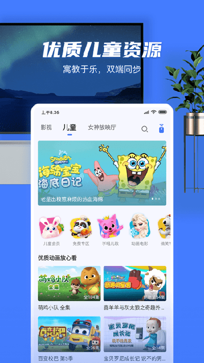 内置海量优质内容资源,涵盖热播影视、精品动画和教育课程,一键投屏轻松享受。