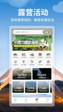海量原创露营产品,随时随地预订豪华露营、海边露营、山地露营、房车露营、主题派对等,满足不同用户的个性化需求;