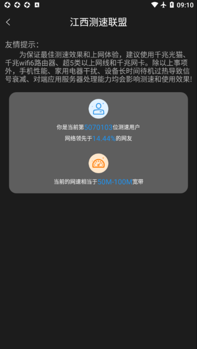 界面设计简洁直观,操作逻辑符合用户习惯,即使是初次使用也能快速上手。测速过程仅需一键点击,三秒内即可生成详细测速报告,包含下载速度、上传速度、网络延迟等多项指标。软件内置智能服务器匹配系统,能自动选择距离最近、负载最低的测试节点,确保测速结果准确可靠。安装包体积控制在10MB以内,下载安装仅需数秒,不占用过多手机存储空间。