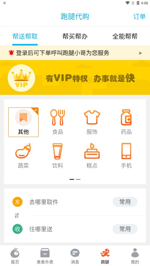 帮买/帮送/帮取。专业跑腿服务覆盖各类场景,24小时待命,随时响应用户需求。