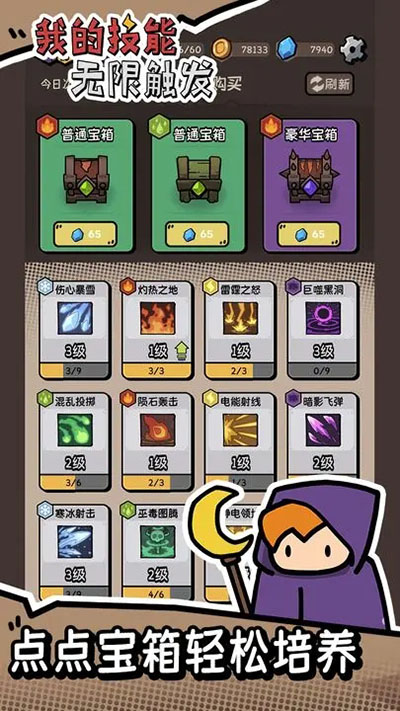 我的技能无限触发免广告是一款极具创新性的Roguelike手游,它将随机生成的地下城探索与独特的技能系统完美结合。在这个充满魔法与冒险的世界里,玩家将化身为无畏的探险者,通过不断解锁和触发技能来突破重重挑战。游戏采用永久免广告设计,让玩家能够完全沉浸在紧张刺激的冒险中。每次进入地下城都会遇到全新的地图布局、敌人配置和宝藏分布,这种永不重复的游戏体验让每一次冒险都充满新鲜感。独特的技能组合系统允许玩家创造属于自己的战斗风格,搭配丰富的装备道具,打造出独一无二的冒险之旅。