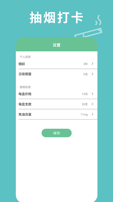 使用者可以输入他们的吸烟年龄和每天吸多少烟,一定要确保信息的真实性。这个系统会限制你每天吸烟的次数,让你有一个过程。基于您的个人数据,APP会生成专属的健康风险评估报告,让您更清楚了解吸烟对身体的潜在危害。
