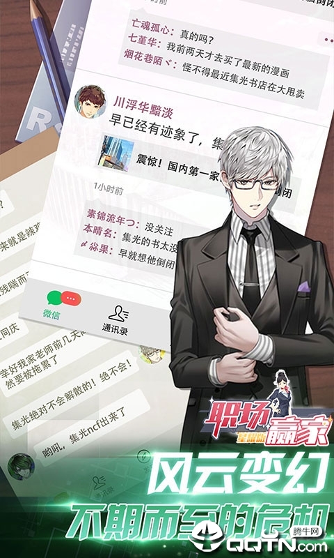 梦想初启,希望所在的彼岸,游戏以励志的职场故事为主线,激发玩家的奋斗热情。风云变幻,不期而至的危机,随机事件系统让游戏充满挑战和惊喜。互动养成,颜即正义的真理,精美角色培养系统满足你的收集欲望。谈判推图,沉迷输出的奥义,独特的商业谈判玩法带来全新的策略体验。此外,游戏还加入了社交系统,可以与其他玩家组建商业联盟,共同征战商界。