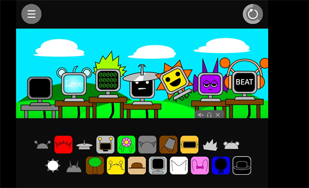 游戏的核心特色是以"电脑先生"为基础角色,玩家可以通过将不同音乐元素拖拽到角色身上的特定位置来创造千变万化的音乐效果。每个部位对应不同的音色变化,比如头部控制主旋律,双手控制节奏型,这种创新的交互方式让音乐创作变得直观有趣。