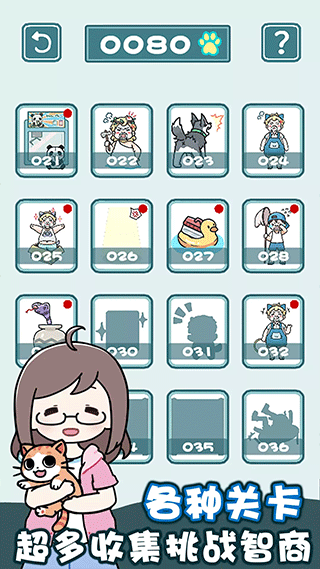 游戏采用精美的手绘画风,每一帧画面都充满治愈感,可爱的喵星人形象让人爱不释手。谜题设计充满创意,经常需要打破常规思维才能找到解决方法。游戏角色丰富多样,不仅有各种可爱的猫咪,还有穿着兔女郎服装的搞笑大叔,为游戏增添了不少趣味性。
