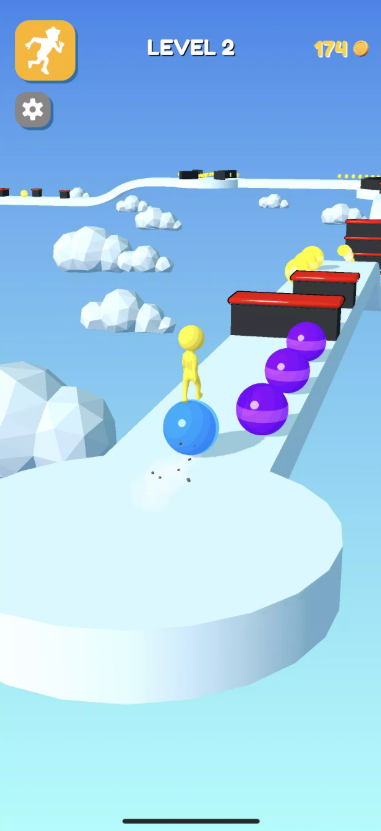 脚踩球球一路翻滚,向着终点进发吧!注意躲避过高的墙障哦。独特的物理效果让球球的滚动轨迹充满变数,需要玩家随机应变。