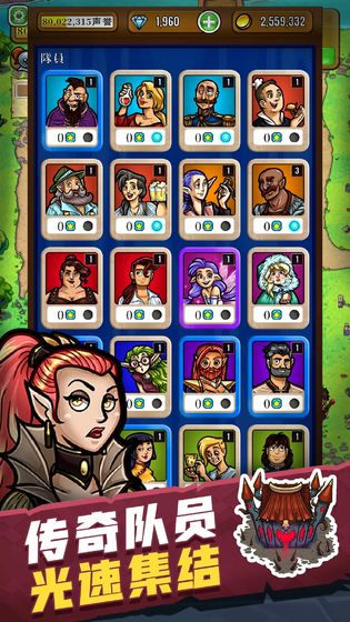 超百位豪杰任君招募,涵盖英雄,店主,吸血鬼,独角兽等等。每位角色都拥有独特的背景故事和技能属性,玩家可以根据自己的战略需求组建最佳阵容。