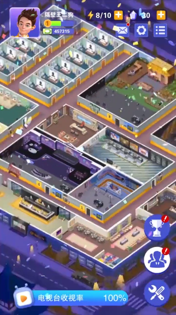 想要体验当制片人的乐趣吗?《我的电视帝国》为你提供了绝佳的平台!在这里,你可以从零开始打造属于自己的电视王国。游戏采用高度仿真的经营模式,让你亲身感受电视台运作的每一个环节。从节目策划到录制现场,从设备采购到人员管理,每一个细节都需要你的精心规划。随着电视台规模的扩大,你将面临更多元化的挑战,需要不断调整策略来应对市场变化。