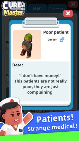 作为医院院长,你将面对各种稀奇古怪的病症挑战。游戏设计了数十种创意疾病,从常见感冒到"动漫成瘾"等奇葩症状应有尽有。你需要研发特殊疗法,建立专业科室来应对这些独特病例。随着医院等级提升,还能解锁更多高科技医疗设备,让治疗过程充满惊喜。游戏还加入了突发事件系统,考验你在紧急情况下的应变能力。