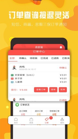 商家可以在软件中查看并管理店铺的门票、餐饮和住宿信息,实现一站式运营。