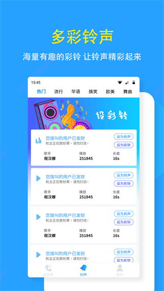 新增了200+热门来电秀资源和300+最新铃声,包括当下最火的影视剧片段和流行歌曲,满足用户的多样化需求。