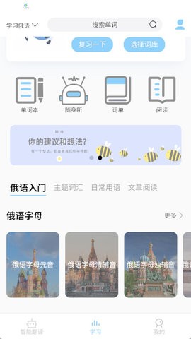 文字转语音:突破机械发音局限,提供8种男女声线选择,支持语速语调自定义,让外语朗读更自然。分类收藏夹:创新采用标签管理系统,用户可创建20个自定义分类夹,收藏内容支持添加学习备注与复习提醒。俄语词库:包含1.2万条分级词汇,配合艾宾浩斯记忆曲线设计复习计划,每个单词均配有例句解析与文化背景说明。