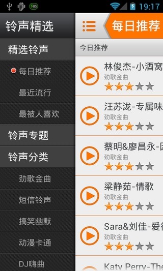 每日推荐铃声:小编每天精心挑选10-15首优质铃声,确保用户每天都能听到新鲜好听的音乐,让铃声选择不再单调。2.最近流行:软件实时更新每日、每周、每月的流行趋势,帮助用户紧跟潮流,轻松找到当下最热门的铃声。3.最被人喜欢的铃声:通过数据分析,展示每天、每周、每月用户最喜欢的铃声,让用户快速了解大众的偏好。4.铃声专题:小编定期整理并发布各种主题铃声合集,如节日专题、影视原声等,方便用户快速找到符合心意的铃声。5.铃声分类:软件提供多种分类,包括短信铃声、搞笑幽默、儿童铃声、欧美、日韩等,满足不同用户的多样化需求。