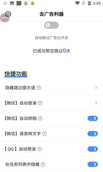 能够帮助大家一键就可以跳过各种广告,让你从此脱离各种广告的洗脑,享受更加纯净的上网体验。