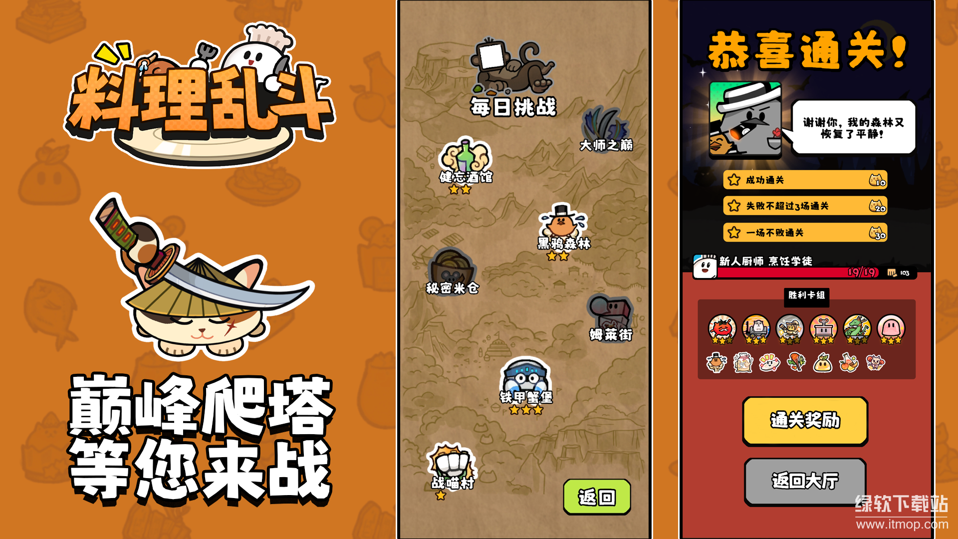 《料理乱斗》是一款将Roguelike随机元素与自走棋策略玩法完美融合的创新游戏,以美食烹饪和萌宠对战为核心主题。在这个充满想象力的美食世界里,玩家将扮演一位天才料理师,通过收集上百种特色食材卡牌,进行创意无限的组合搭配,组建出独一无二的料理战队。游戏中那些造型可爱的动物厨师们会在棋盘战场上展开令人捧腹的料理对决,从抛掷寿司到发射辣椒导弹,每场战斗都充满欢乐与惊喜。