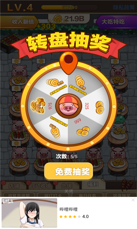 游戏开始时玩家会自动解锁第一列烧烤摊位。整个游戏共有四个摊位可供解锁,每个新摊位都能带来更多收入来源。当所有桌位都解锁完毕后,重点就转向店铺升级和自动化改造。玩家可以投资无人机系统实现自动收银,大幅减轻操作负担。游戏还设计了丰富的随机事件,比如美食家"蔡澜"到访等特殊剧情。操作简单直接,无需复杂思考,非常适合工作间隙放松娱乐。当玩家达到50级时,还能将普通烧烤店升级为特色烤翅专门店,开启全新的经营篇章。