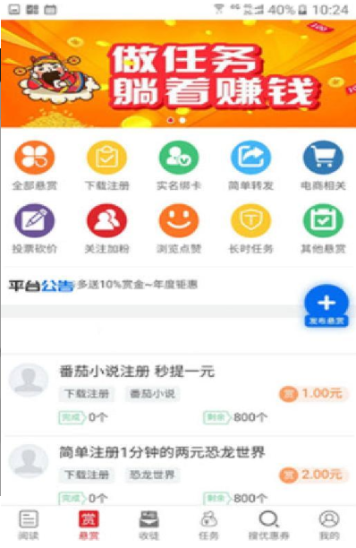 1. 任务大厅:展示所有可用任务,用户可自由选择。