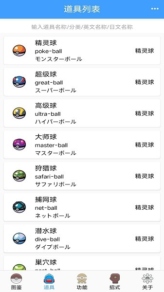 道具列表:从基础精灵球到稀有进化石一应俱全;