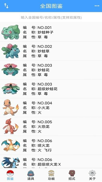 全国图鉴:完整收录各世代宝可梦的基础信息,包括属性相克、进化条件等实用数据;