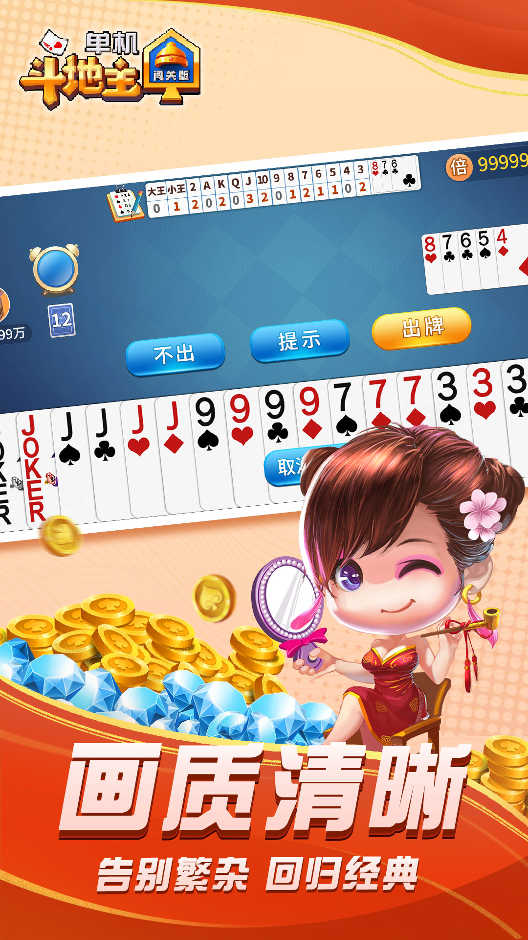 经典斗地主玩法,支持单机模式随时畅玩,完整保留叫地主、抢地主等核心机制