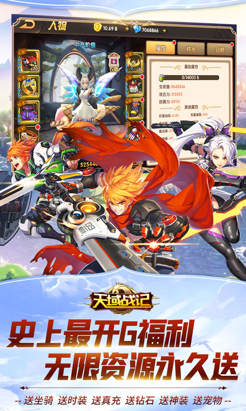 《天域战记》是一款精心打造的超变态福利Q版ARPG手游大作!游戏不仅完美还原了经典动漫角色形象,更在玩法上进行了全面升级。玩家可以体验到流畅的连招系统、精准的操作反馈以及震撼的打击特效。游戏内设有多种特色玩法,包括考验策略的杀戮之塔、需要团队配合的世界BOSS战、热血沸腾的荣耀战场以及充满惊喜的古墓密藏探险。每日登录即可领取至尊抽奖卷和真充值卡,转职还能获得千元充值卡和金色神装,福利多到数不清!