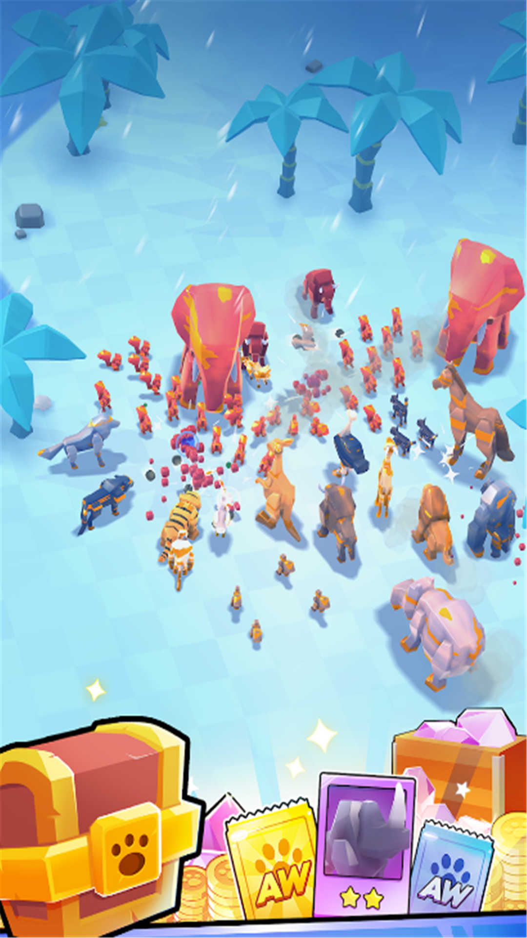 革命性的内置菜单系统不仅提供常规辅助功能,还包含独特的"战术时光机",允许玩家回放关键战斗节点进行策略调整。游戏拥有超过50种特色动物兵种,从陆地猛兽到海洋生物应有尽有,每个兵种都具备3条不同的进化路线和专属的合体技能。采用次世代引擎渲染的游戏画面,细致到可以看清动物毛发在战斗中的物理摆动,动态光影效果让每个战场都独具魅力。创新的"生态链"战斗系统真实还原了自然界中的捕食关系,让策略维度更加丰富。特别设计的休闲模式移除了资源限制,让玩家可以纯粹享受阵容搭配的乐趣。