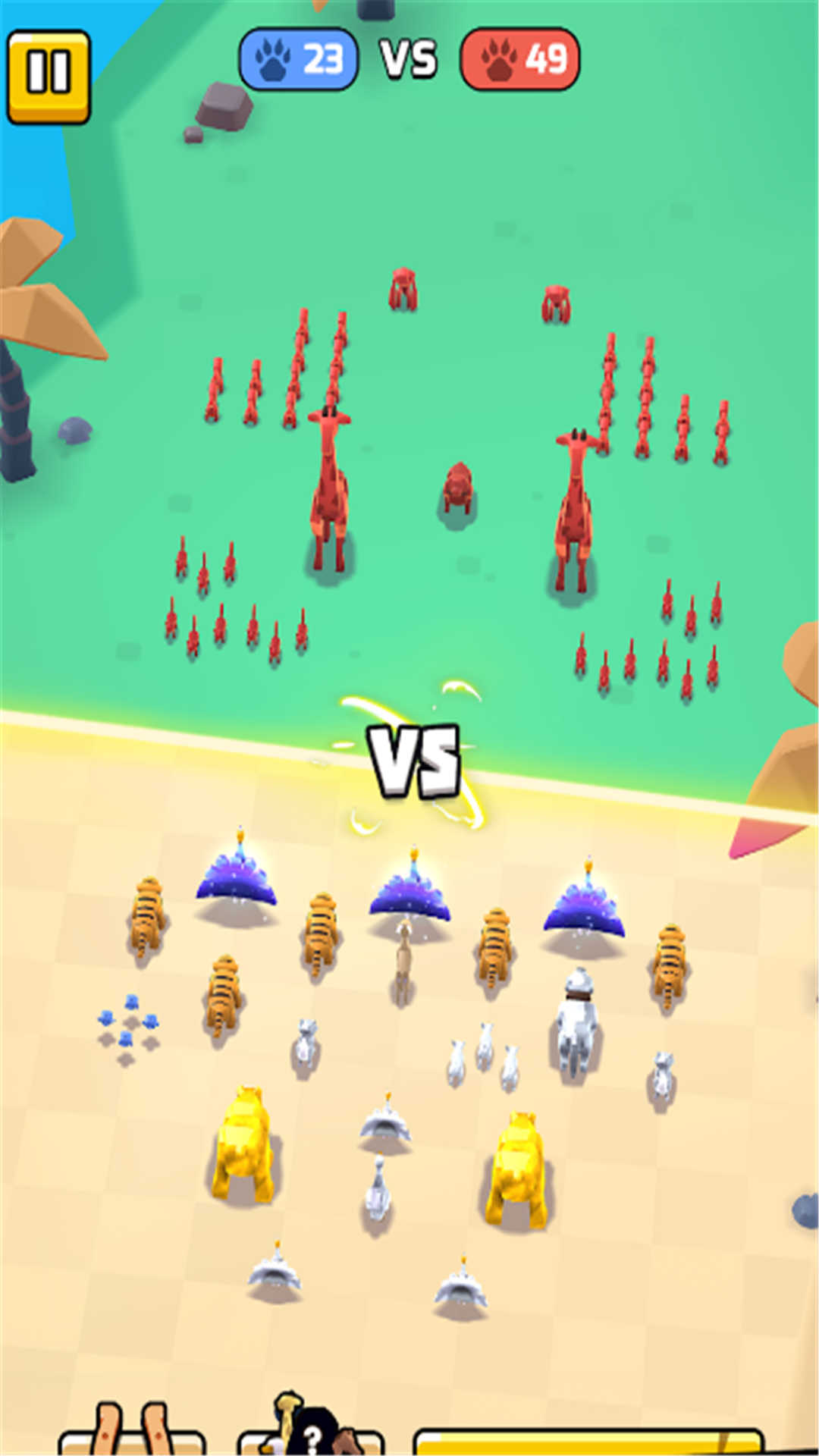 【兵种搭配】建议新手采用"铁三角"基础阵容:犀牛作为前排坦克,猎豹担任机动突击手,猩猩负责远程投掷攻击,这种组合能应对大多数初期关卡。随着游戏深入,可以尝试加入具有群体控制能力的河马或拥有治疗技能的长颈鹿。