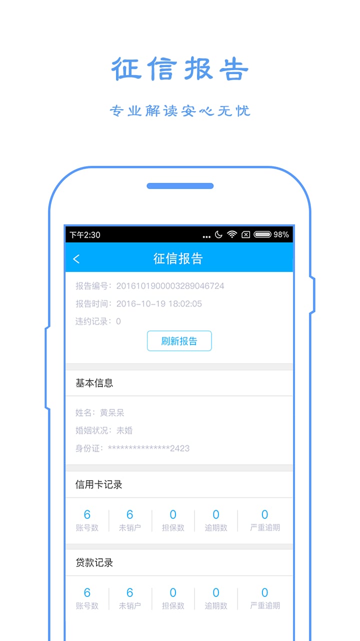 报告授权:征信报告可以授权给第三方,帮用户向机构提交信用证明,助用户更快低获得高额快速的贷款,权威可靠。授权过程采用加密传输技术,确保用户信息安全,让您放心使用。
