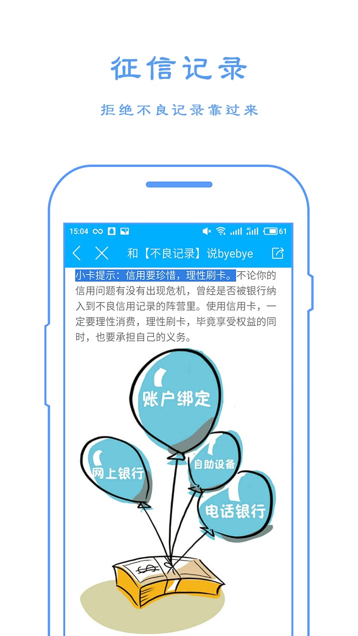 快速查询:提交申请后,24小时即可得出征信报告,全方位展示你的个人信息和信用卡消费信息、银行贷款、房贷车贷等。报告采用可视化图表展示,让复杂的数据一目了然,帮助用户快速理解自己的信用状况。
