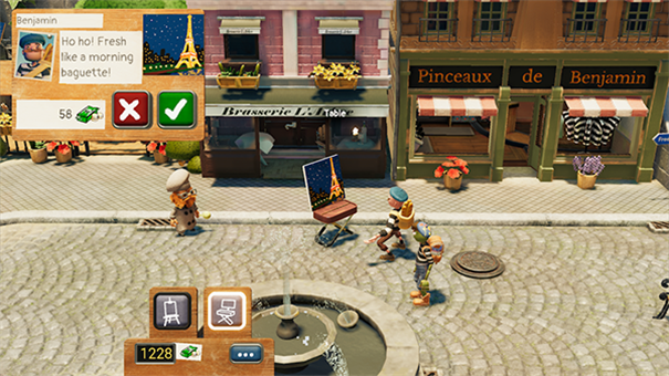 -解决你的红酒和法棍账单。你对法棍的上瘾会成为你失败的原因吗?游戏中加入了生活开销系统,你需要通过卖画来维持生计,同时还要抵抗各种诱惑,保持艺术家的尊严。