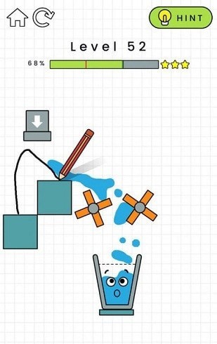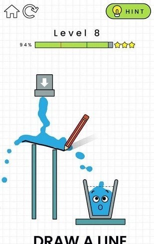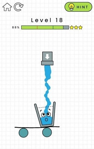 这个杯子不高兴,因为它是空的,你的任务是画一条线,把杯子装满,让它再笑一次!游戏通过拟人化的杯子表情变化,为解谜过程增添了情感元素,让玩家在完成关卡时获得额外的成就感。