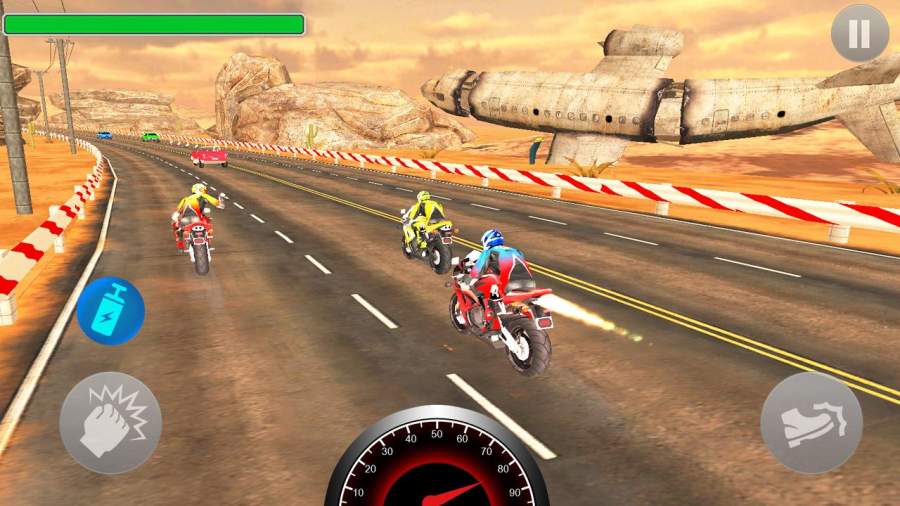 在紧张刺激的比赛中,您需要巧妙运用各种道具攻击靠近的对手,无论是投掷炸弹还是释放烟雾弹,都能帮助您扫清夺冠路上的障碍。游戏提供数十种独特道具,每种道具都有其特殊效果,灵活运用这些道具是制胜关键。您可以在特定区域与敌人展开激烈对决,感受拳拳到肉的格斗快感。游戏内收录了上百款造型炫酷的摩托车,从经典复古到未来科技风格应有尽有,让您随心所欲地打造专属座驾。精湛的驾驶技术是获胜的基础,您需要在蜿蜒曲折的赛道上展现完美的过弯技巧,在惊心动魄的追逐战中超越所有对手。