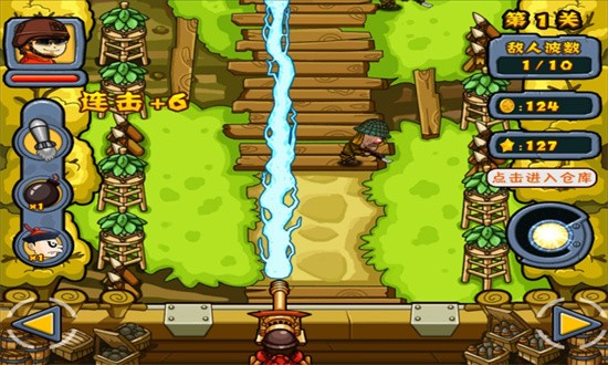 玩家需在每波敌人的冲击下守住自己的驻地即为过关。为增添游戏的趣味性,游戏还设有9个EX奖励关卡,这些特殊关卡将考验玩家的极限操作和策略运用能力。游戏采用卡通风格,敌人角色的设计需体现日军和伪军不同兵种形象,要求逗趣滑稽,玩家可以在限定时间内打击相应的任务即可获得大量的金币。独特的角色成长系统让每次战斗都能获得实质性的提升。击倒来袭的敌人,守护城墙!游戏以城防守护为目的,帮助阿虎,通过9个不同的战役地形,每个关卡内分设多波敌人。随着游戏深入,敌人种类和进攻方式会越来越多样化,需要玩家不断调整战术应对挑战。