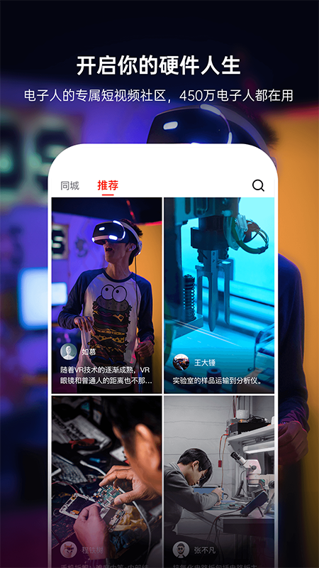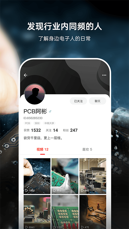 了解身边电子人的日常,通过智能匹配系统找到志同道合的技术伙伴