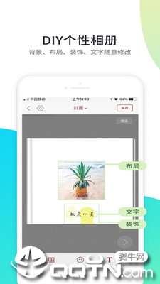 【个性设计】内置海量贴纸、边框和文字样式,支持自由组合搭配,让您轻松实现专业设计师级别的创意效果,打造独一无二的相册作品。