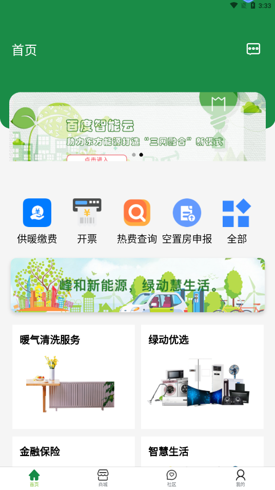 绿动生活APP是一款集供暖缴费、业务办理、电子商城、政务发布等多功能于一体的智慧生活服务平台。通过整合线上线下资源,为用户提供便捷高效的社区服务体验。无论是供暖缴费、热费查询,还是空置房申报、低保退费,都能一键轻松完成。平台依托百度智能云技术,打造"三网融合"的智慧社区生态,让用户享受科技带来的便利生活。从基础供热服务到全屋智能解决方案,绿动生活致力于为用户提供全方位的智慧生活体验。