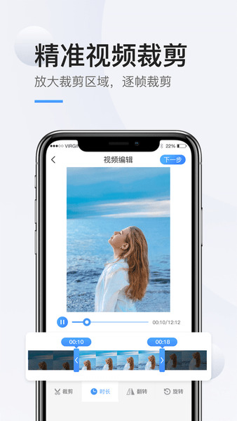 视频时长编辑,支持精确裁剪视频长度,去除多余部分;