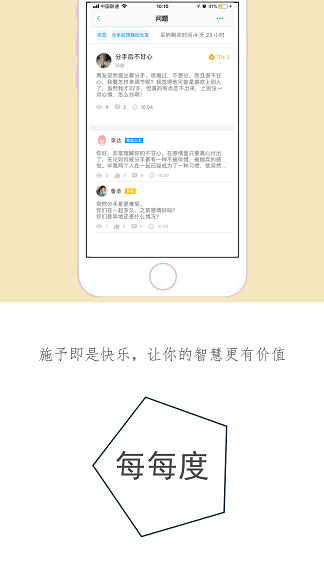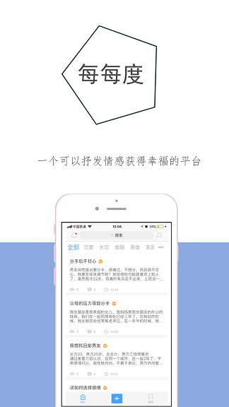 每每度是中国首家情商管理平台,致力于为用户提供全方位的心理支持服务。在这里,您可以畅所欲言地倾诉生活中的烦恼,无论是情感困惑、家庭矛盾还是职场压力,都能得到专业咨询师和热心网友的真诚建议。平台支持多种咨询方式,包括公开提问、一对一文字交流以及语音咨询,满足不同用户的个性化需求。同时,平台还提供丰富的情商提升课程和心理测评工具,帮助用户更好地认识自我、提升心理素质。