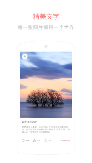 好看一图是一款专为图片爱好者打造的视觉盛宴软件,汇聚全球高清美图与深度解说,带您探索军事、世界、艺术等多元领域。无论是寻找灵感还是满足好奇心,这里都能提供沉浸式的图文体验。软件采用智能推荐算法,精准匹配用户偏好,让每一张图片都成为触动心灵的瞬间。高清画质与流畅操作相结合,为您打造极致的视觉享受平台。