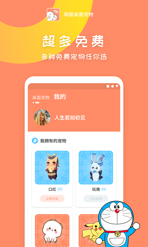 【养在任意界面】可以养在手机任何界面,不管是桌面、还是QQ、各种游戏,都可以出现;完全不会影响手机正常使用,反而会为你的日常操作增添乐趣。