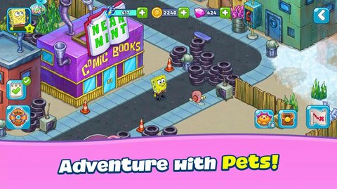 角色互动:游戏中有多个经典角色,如派大星、章鱼哥、蟹老板等。玩家可以与这些角色进行互动,触发特殊事件或获得任务提示,增加了游戏的互动性和代入感。每个角色都保留了动画中的性格特点,对话幽默风趣,让玩家感受到原汁原味的海绵宝宝世界。