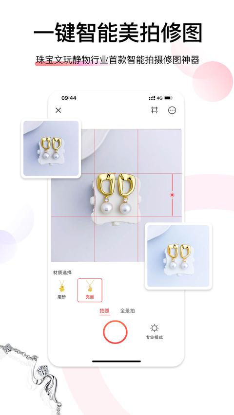 这是一款功能强大的专业拍照软件,特别针对珠宝首饰等小件商品进行了优化。软件内置智能对焦系统,可以精准捕捉饰品的每一个细节,配合海量专业滤镜,让普通手机也能拍出媲美专业相机的效果。除了基础拍摄功能外,还提供丰富的后期编辑工具,包括"蜡笔"涂鸦、"背景"替换等创意功能,让用户可以轻松DIY出独特的产品图片,满足电商平台的各种展示需求。