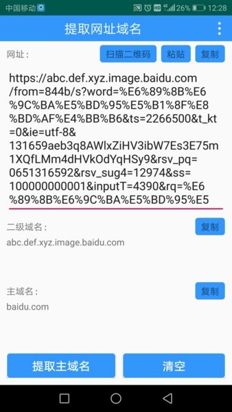 可以手动输入网址、用扫描图片中的二维码或者识别手机相册图片中的二维码获得网址,操作灵活多样。2.自动生成二级域名、主域名,方便、快捷、好用!应用会根据输入的网址自动识别并生成相应的域名信息。3.实用的一款提取网站域名的软件,省很多不必要的步骤!无论是从搜索引擎结果还是具体网页中,应用都能快速准确地提取出所需的域名信息。此外,应用还支持历史记录功能,用户可以随时查看之前提取的域名信息,方便后续使用。无论是日常浏览还是专业需求,这款应用都能为用户提供高效、便捷的解决方案。