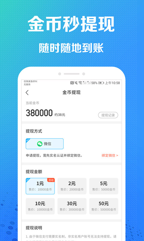 极速提现体验:支持多种提现方式,提现金额快速到账,真正做到"今日赚,今日提"。系统采用智能风控机制,确保每一笔提现都能安全、及时地到达用户账户。