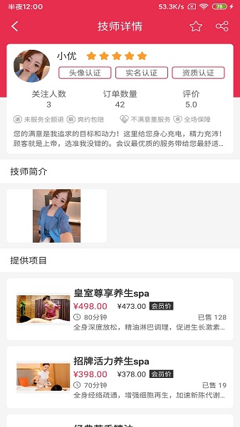 技师选择,服务内容,一目了然;平台采用直观的界面设计,让用户能够快速找到所需服务。