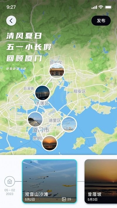 【智能相册】创新的智能相册功能会自动整理你的旅行照片,在地图上标记每个拍摄地点,清晰展示你的旅行轨迹。还能根据时间、地点等要素智能生成精美的旅行回忆录。